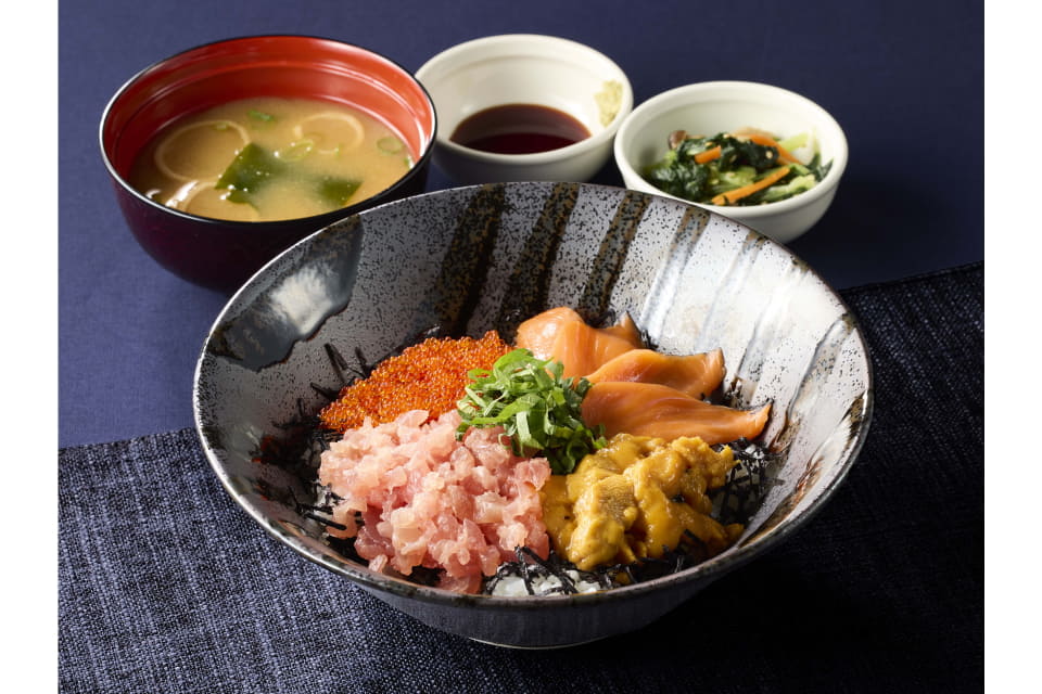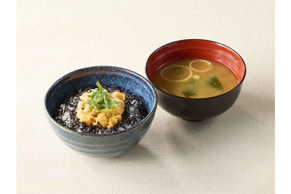 また、濃厚なウニが手軽に楽しめる小丼とみそ汁のセット「ウニ小丼~みそ汁付き~」の提供も開始する。単品のほか、プラス550円でグランドメニューの和膳のご飯をウニ小丼に変更することもできる。