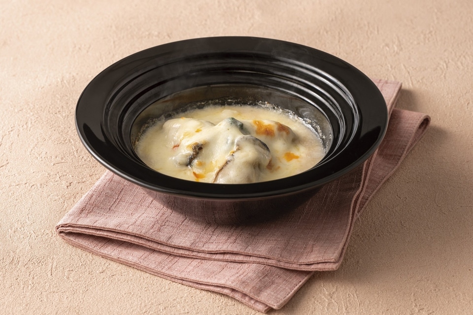 ・牡蠣と黒米の白味噌チーズ焼き