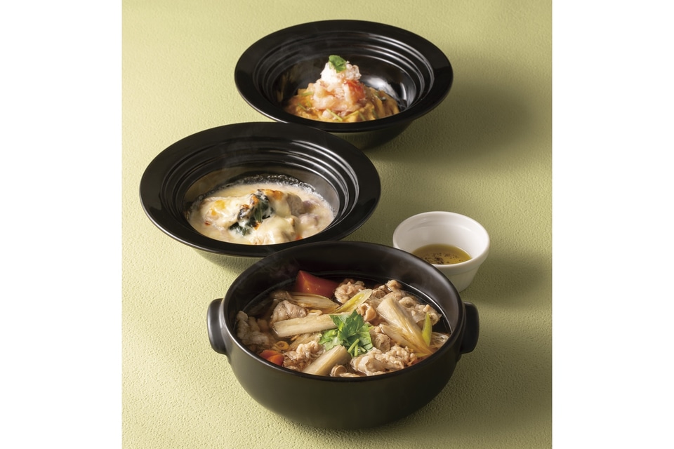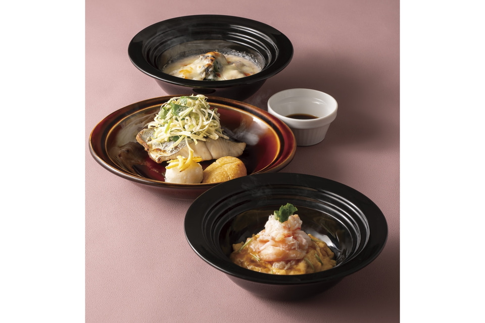 新春を告げる鰆を柚子の香りで仕上げた「鰆の初春焼き」をはじめ、豚肉と野菜の旨みがじんわりと広がる「山形豚とごぼうの旨出汁鍋」、ふわとろのたまごと大根に蟹の旨みを重ねた「蟹とふわとろたまご、大根のあんかけ」など4品をラインアップした。単品で楽しめるほか、おすすめ3品セット、2品セットも用意している。