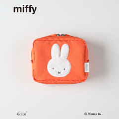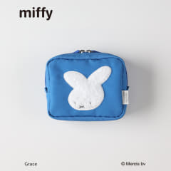 フワフワボア素材のミッフィーの顔に加え、内側にさまざまな年代のミッフィープリントが施されたポーチ。持ち歩きにぴったりなサイズながら、大きく開くファスナーで物のスムーズに小物をすっきり収納できる。