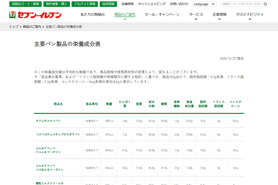 セブン-イレブン・ジャパンは、オリジナルの主要パン製品について、飽和脂肪酸、トランス脂肪酸、コレステロールなどの情報を確認できるWebページを公開した。