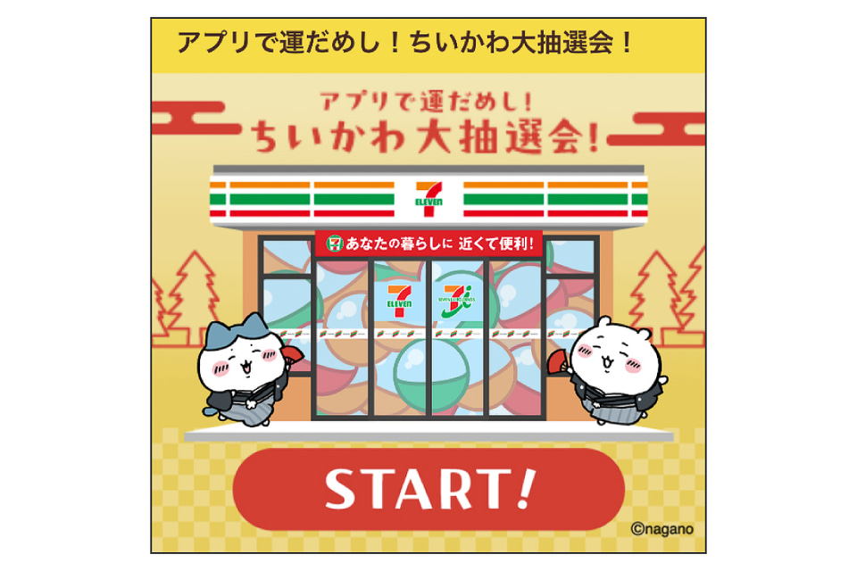 セブン-イレブン・ジャパンは人気キャラクター「ちいかわ」とのコラボキャンペーンの一環で、「アプリで運だめし!ちいかわ大抽選会!」をアプリ会員向けに実施する。