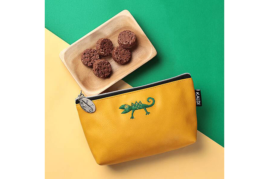 カルディ、ワンポイントのトカゲがかわいい「カカオの森 ポーチ」発売