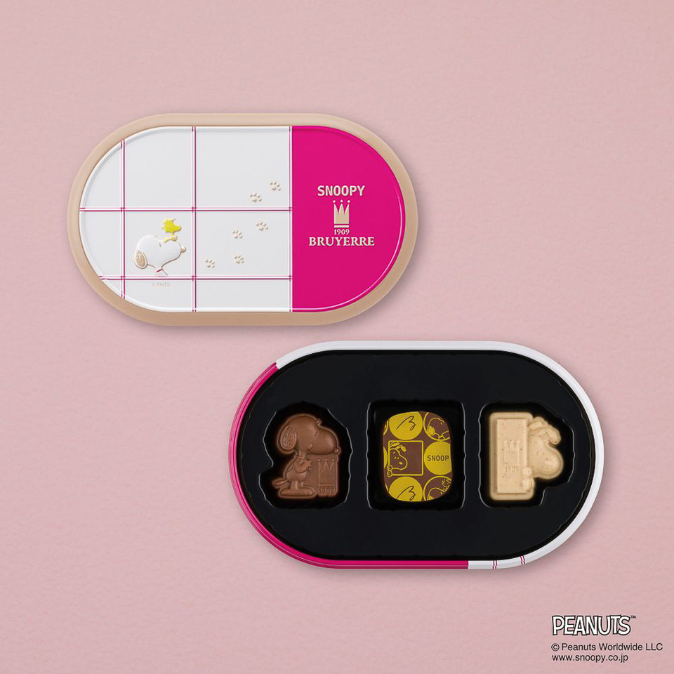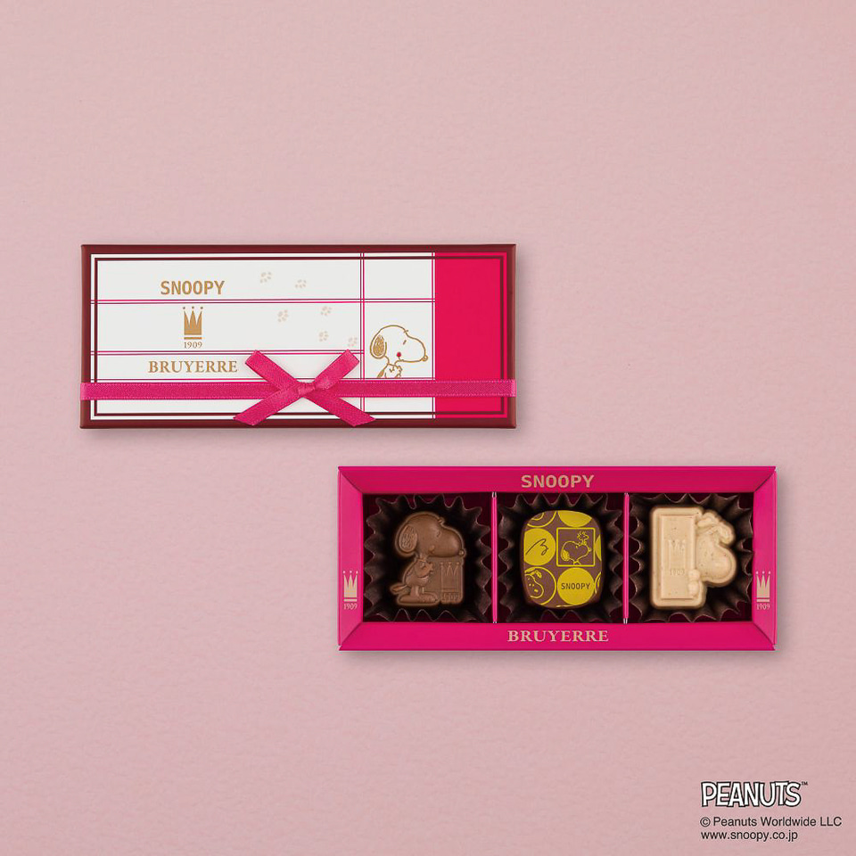 スヌーピータウンショップは、1909年創業のベルギーの老舗ショコラティエ「ブリュイエール(BRUYERRE)」とのコラボレーションショコラを今月発売する。