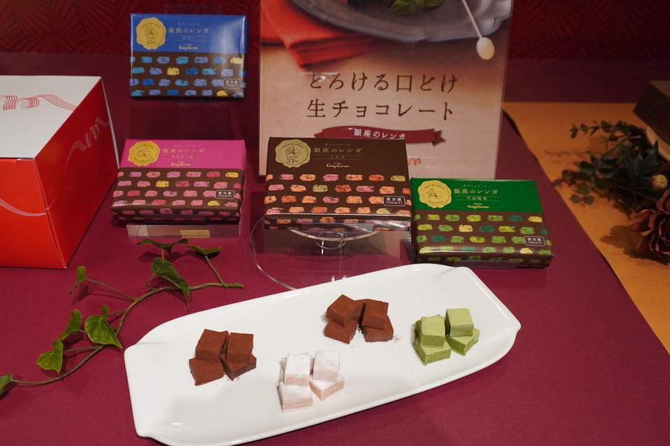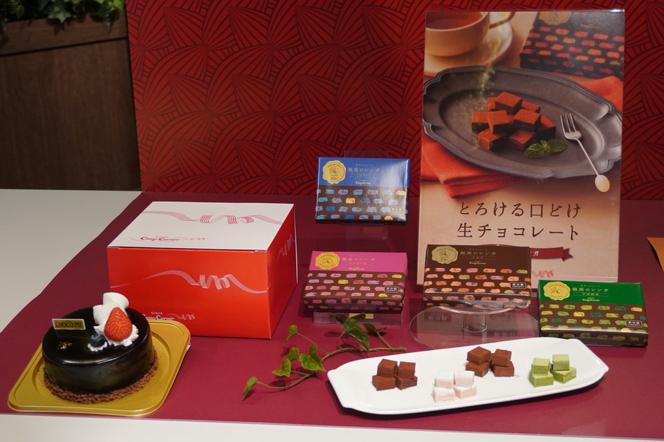 銀座コージーコーナーは、要冷蔵ならではの繊細なくちどけが自慢の「銀座のレンガ」をミルク、ビター、あまおう苺、宇治抹茶の4つの味で販売する。さらに、ロッテとのコラボで生まれた「ケーキになったチョコパイ」は、しっとりなめらかなチョコパイをケーキ表現し、フレッシュのイチゴとブルーベリーをトッピングして提供する。