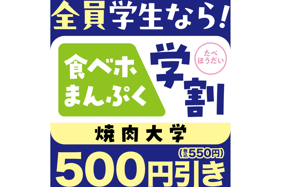 また、6名以上でコースを利用すると、幹事1名分が無料になるキャンペーンを1月10日~31日に実施するほか、学生グループ限定で食べ放題コースがすべて500円引きになる(学生証提示)。