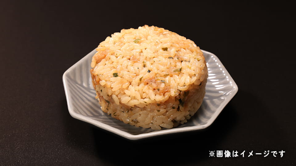 めんつゆで炊き込んだご飯に、天かす・青ねぎ・青のりを混ぜ込んだ、シンプルながらも後を引く味わいのおにぎり。口に入れた瞬間に広がるだしの旨みと天かすのコクの重なりが特徴。