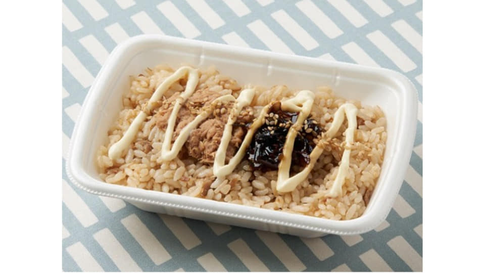シーチキンマイルドや和風だしつゆ、白だし、こんぶだしで炊き上げたごはんの上に、シーチキンと昆布佃煮を載せ、マヨソースをかけて仕上げた。優しい仕立ての味わいが堪能できる。