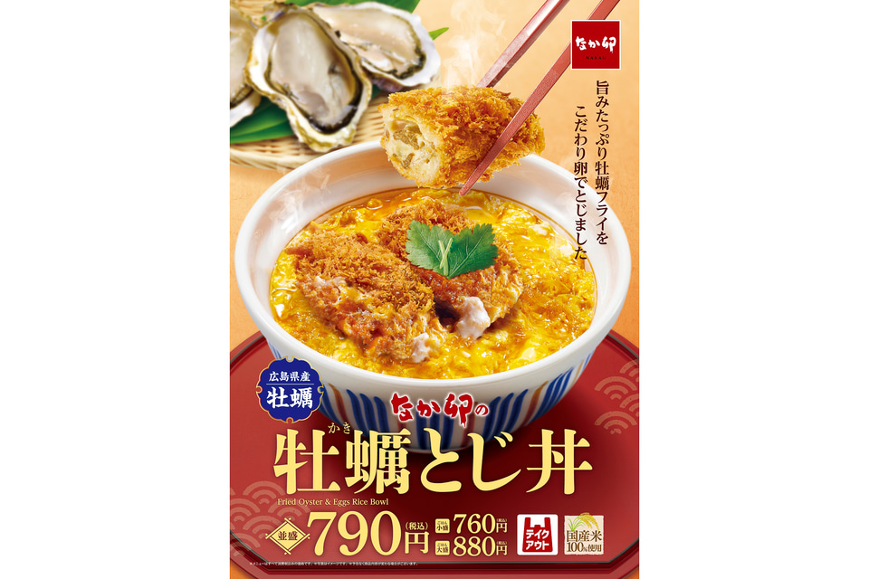 なか卯、広島県産牡蠣の旨みをふわとろ卵で味わう「牡蠣とじ丼」発売