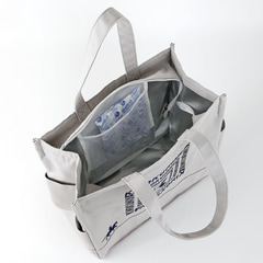 仙台にちなみ「伊達政宗」のシルエットと紀ノ国屋ロゴが刺繍されたコットン生地のエコバッグで、内側は保冷加工が施されている。