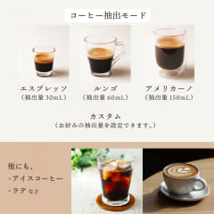 モード: 5種類(エスプレッソ・ルンゴ・アメリカーノ・カスタム・お湯)