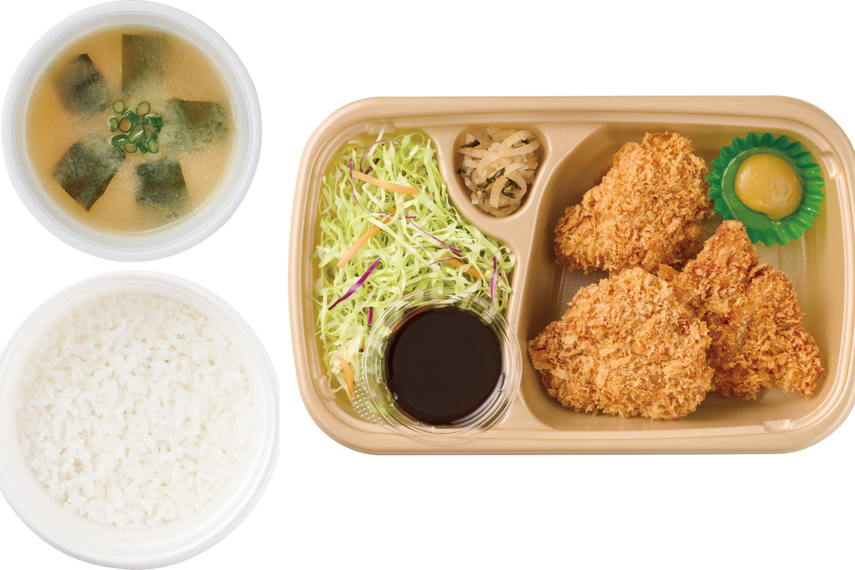 ・「[テイクアウト]とりカツ(3個)ごはん・みそ汁付」(860円)
