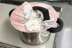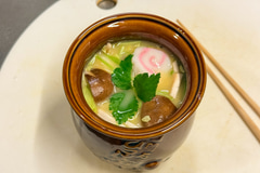 活用その7は、ひっぱりだこ飯容器の人気再利用のひとつ「茶碗蒸し」。参考までに私は卵2個、出汁汁300ccとそのほかの具材を投入。深さのある鍋にお湯を沸かして蓋をし、強火で3~4分、箸を蓋にはさんで弱火で約30分蒸しました。