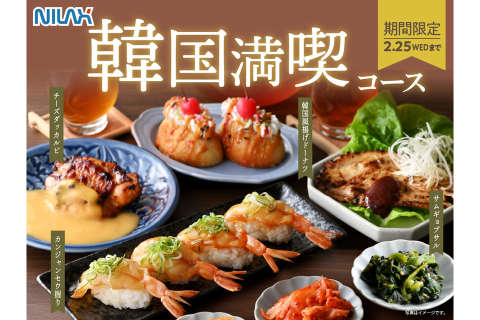 ニラックスは「ニラックスブッフェ」で、韓国グルメを食べ放題で満喫できる「韓国グルメフェア」を1月29日~2月25日に実施する。