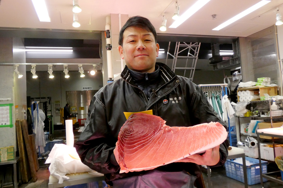 米彦 営業部長の越原哲也氏は、「去年もやらせてもらって実際にお店に食べに行って感じたことを今回活かした。お寿司は食べておいしいのが一番。今回は天然の本鮪にこだわった。味重視、食感重視。普段はメバチマグロが多いと思うが、今回は天然の本鮪。赤身の味が全然違う。天然はほどよい酸味と香りがある。とくに赤身に注目してほしい」と語る。