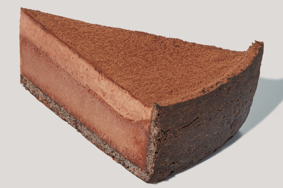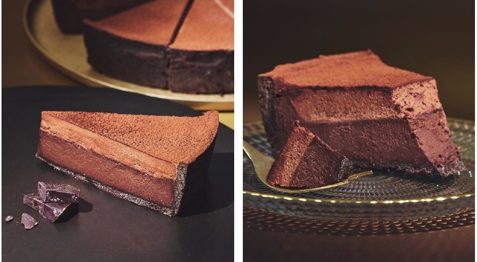 さっくりとしたブラックココアのタルト生地にしっとりと焼き上げたチョコレート生地、なめらかで濃厚な風味のチョコレートムースを重ねている。トップにはココアパウダーをかけ、チョコレートの味わいを堪能できる。
