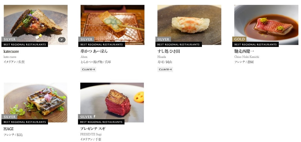 また、食べログユーザーから注目されている初ノミネート店の「Best New Entry」は12店、料理を通してその土地の風土や文化を深く味わえる店の「Best Regional Restaurants」は6店となった。