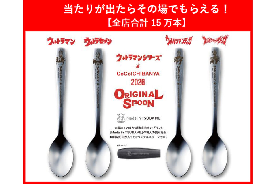 また、2月28日まで実施している「ウルトラ創業祭2026」の対象メニューとなっており、1食注文につき、スピードくじを1枚進呈する。当たりを引いた人には、ウルトラヒーローの刻印を施したオリジナルウルトラスプーンをプレゼントする。
