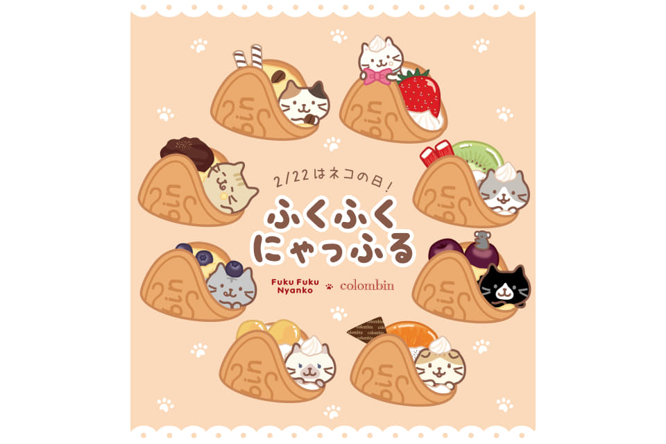 コロンバンは、2月22日の「ネコの日」に合わせ、人気キャラクター「Fuku Fuku Nyanko(ふくふくにゃんこ)」とコラボしたワッフル「ふくふくにゃっふる」を発売する。2月16日~23日の8日間限定で、「原宿スイーツ(旧コロンバン原宿)」(東京都渋谷区神宮前6-29-4 こみやビル 1階)にて取り扱う。