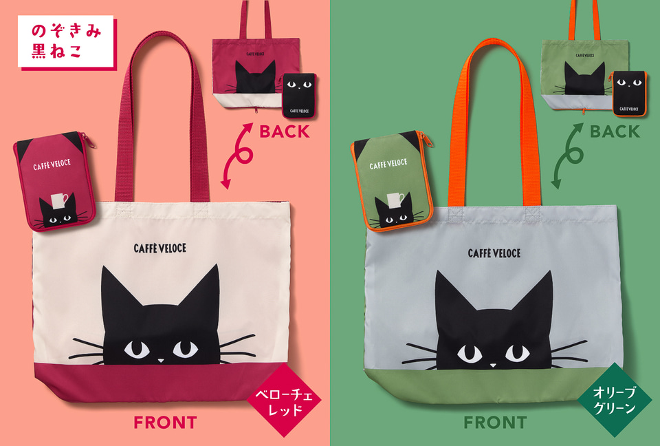 カフェ・ベローチェ、のぞき込む黒ねこがかわいい「黒ねこエコバッグ2026」発売。今年は5種類