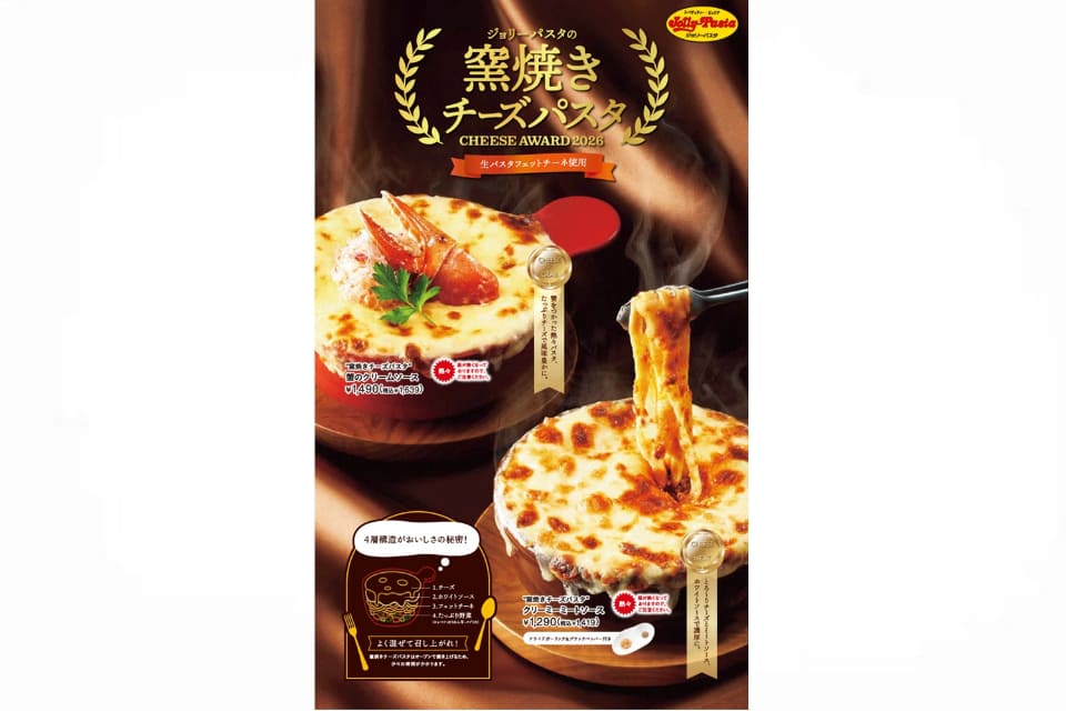 ジョリーパスタは「“窯焼きチーズパスタ” 蟹のクリームソース」と「~播磨灘産~ 牡蠣のモッツァトマト」を2月5日に発売する。