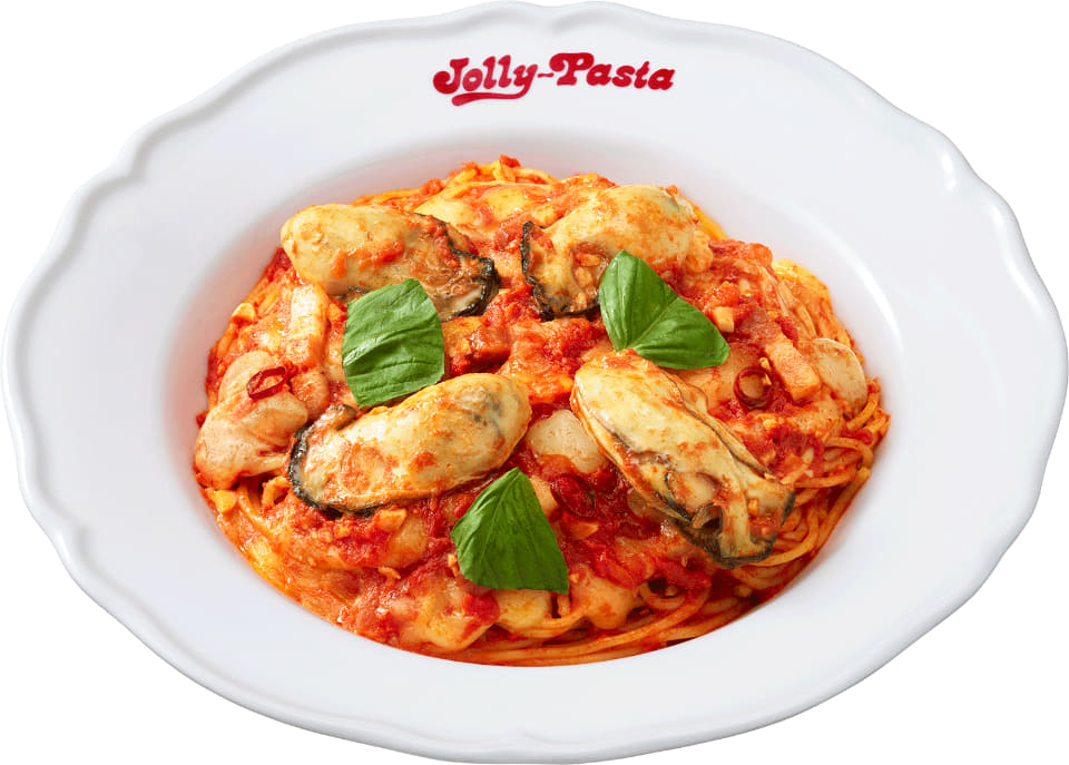 にんにくと唐辛子をきかせたピリ辛なトマトソースのパスタに、モッツァレラチーズとベーコンを加え、ミルキーな味わいの播磨灘産牡蠣を合わせた商品。じっくりソテーした牡蠣の旨みが感じられるトマトソースは、バジルのフレッシュな香りと相性抜群となっている。