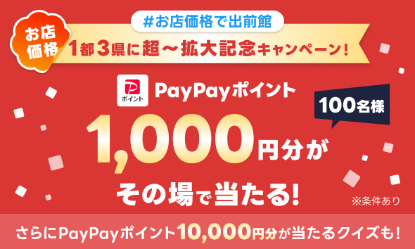 #お店価格で出前館1都3県に超~拡大記念インスタントウィンキャンペーン!