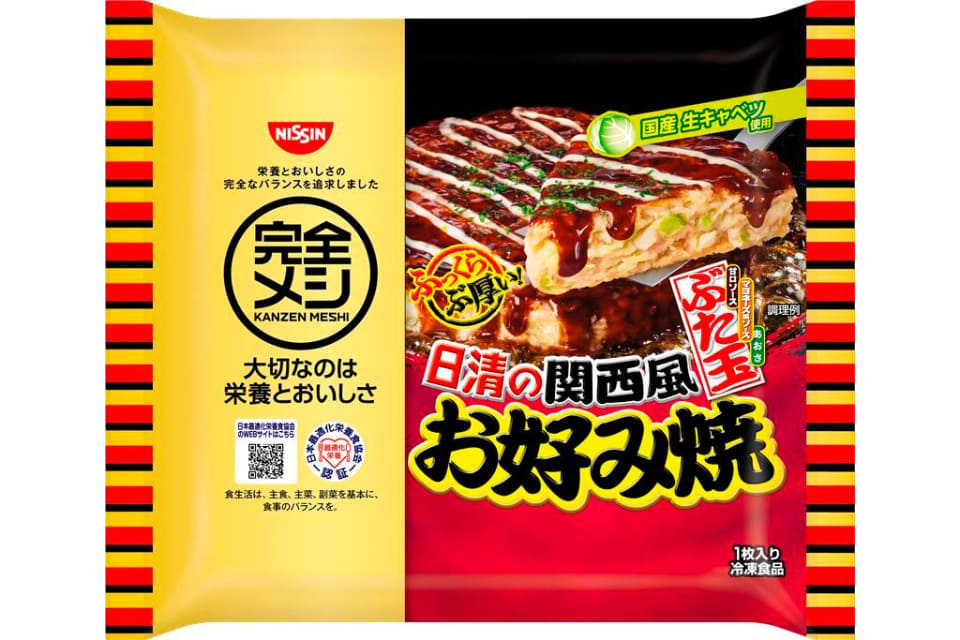 「冷凍 完全メシ 日清の関西風お好み焼 ぶた玉」発売。栄養とおいしさを追求