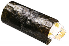 にゃんこが包まれている様子をイメージ。シャリ、ランチョンミートカツ・マヨネーズ・だし巻き卵を海苔で包んだ、バランスの取れた味わい。