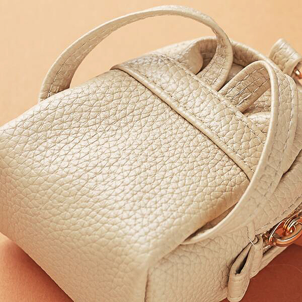 リュックを小さくしたデザイン(約100×70×50mm)で、中にはコーヒークランチが3個入っている。色はベージュとブルーの2種で、いずれも価格は877円。フックが付いていて、バッグにぶら下げて小物入れなどに活用できる。