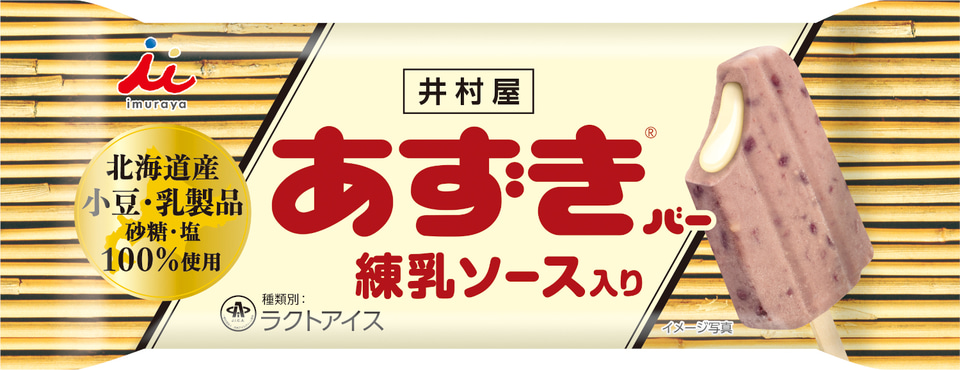 50年以上のロングセラー「あずきバー」と練乳ソースを組み合わせた2層構造のアイスバーで、外側のアイスはあずきの濃厚な味わいと粒感を意識しており、素材そのもののおいしさを味わうことができる。内側の練乳ソースは北海道産の練乳と生クリームを使い、濃厚ながらもあずきと相性のよい、すっきりとした甘さに調整した。あずきアイスとは異なるとろりとした食感も特徴という。