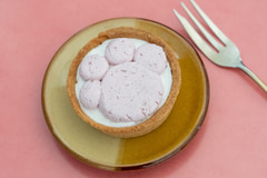 にゃんこの肉球をイメージしたいちごムースをトッピングしたタルト。タルト台の中には、なめらかなチョコカスタード。パッケージは「mofusand」とコラボレーションしたデザインで、全3種類。