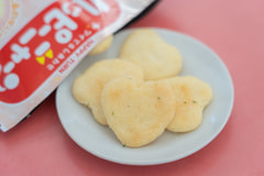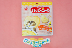 とまらにゃい「コーンポタージュ」味のしあわせにゃハート型のハッピーターン。パッケージはつながるデザインで全4種類。
