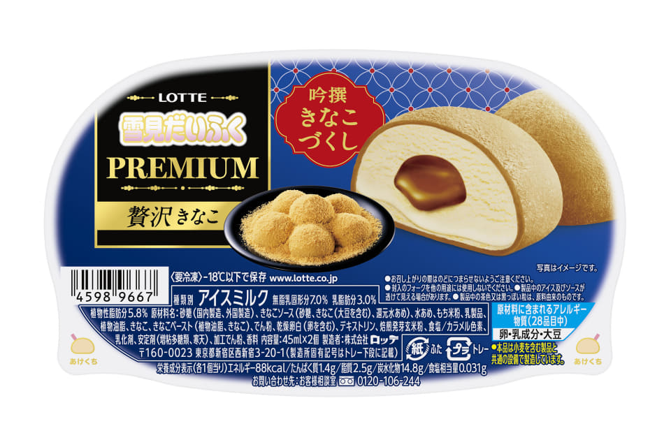 ロッテ「雪見だいふくPREMIUM贅沢きなこ」発売。おもち/アイス/ソースのきなこづくし