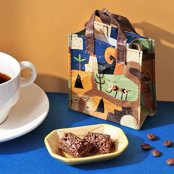 カルディのいつものエコバッグと同じデザインで、ミニサイズになったバッグ(約103×80×45mm)。ボールチェーン付きのためバッグにぶら下げて小物入れにも利用できる。チョコクランチが4個入って価格は494円。