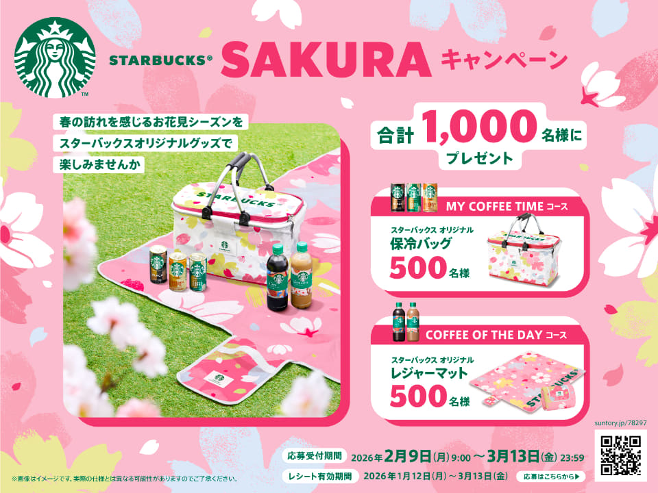 また、花見を楽しめるオリジナルグッズを計1000名にプレゼントする「スターバックス SAKURAキャンペーン」を実施する。