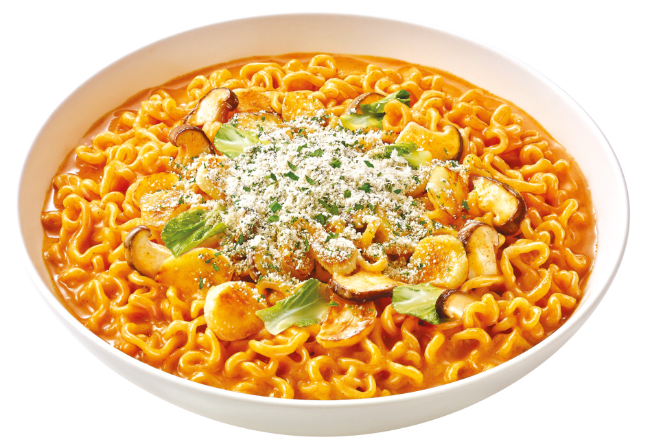 ピリ辛かつ濃厚なクリームパスタ風のソースにもちもちの麺が絡む「辛ラーメン トゥーンバ」は、「日経トレンディ 2025年ヒット商品ベスト30」を韓国ラーメンとして初受賞し、18位にランクインしたが、今回カップ麺としてすべての流通で正式販売する。