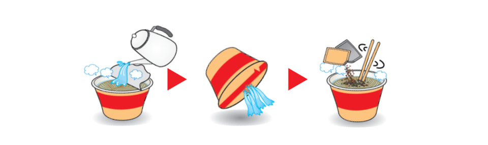 1. フタをすべてはがし(湯切りはしない)、粉末スープ2種を取り出す