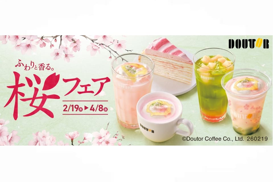 ドトールコーヒーは「ふわりと香る。桜フェア」を2月19日からドトールコーヒーショップにおいて開始する。