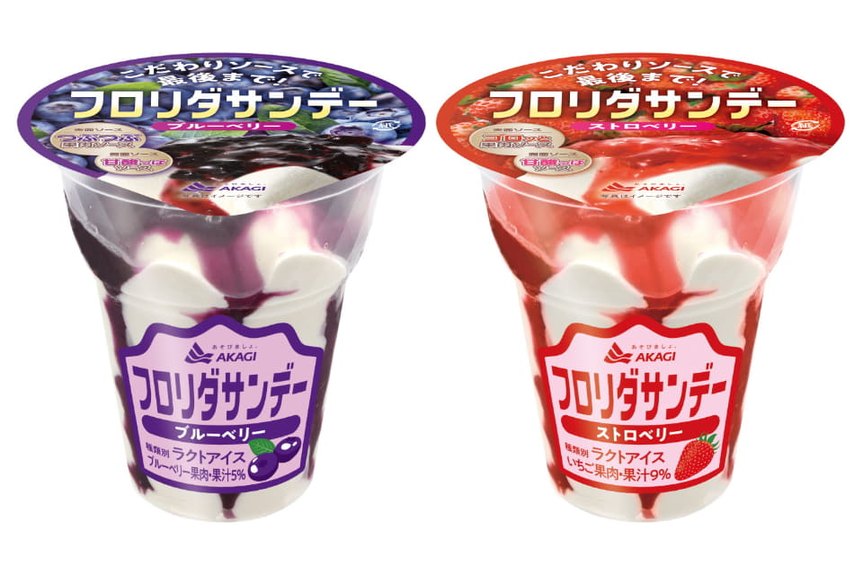赤城乳業、より本物の果実に近づけた「フロリダサンデー(ブルーベリー・ストロベリー)」発売