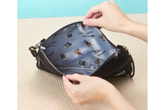 シンプルなデザインで使い勝手のよいサコッシュ。内側には総柄プリントを施し、開くたびにワクワクさせてくれるアイテム。