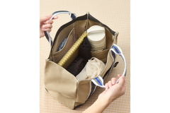 おでかけやサブバッグにちょうどいいサイズのトートバッグ。外側・内側にそれぞれポケットが付いていて、機能性も抜群。