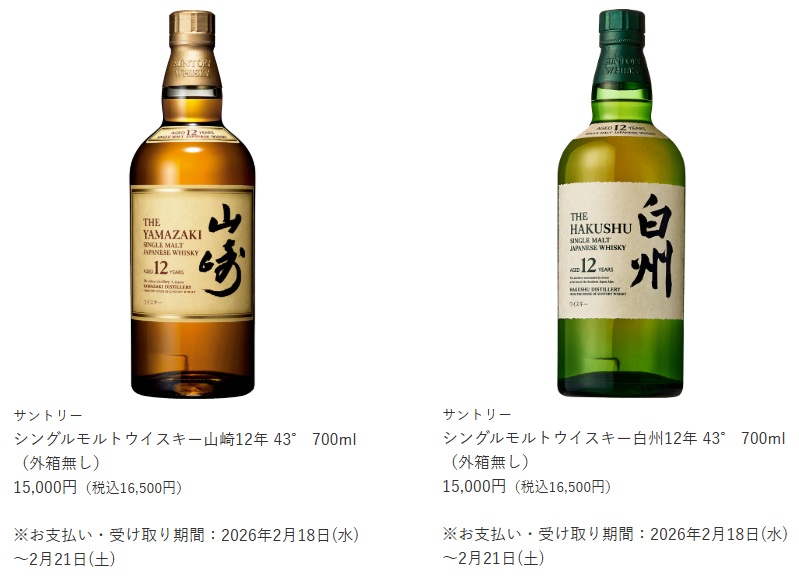 オーケー、ウイスキー「山崎12年/2025」「白州12年/2025」「響21年/JH」を抽選販売