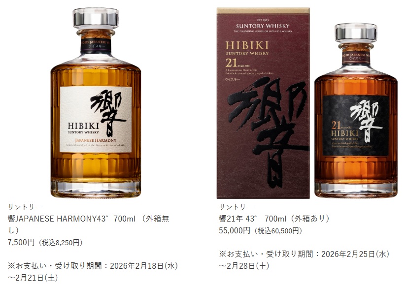 ・「ウイスキー響21年」(6万500円)