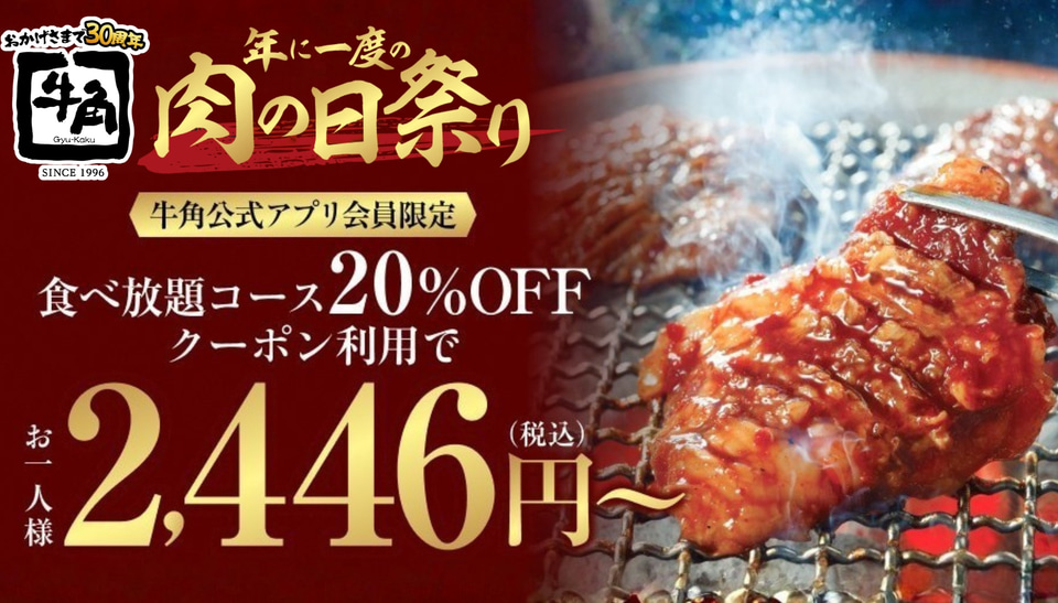 牛角「食べ放題コース20%オフ」キャンペーン概要