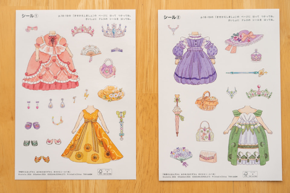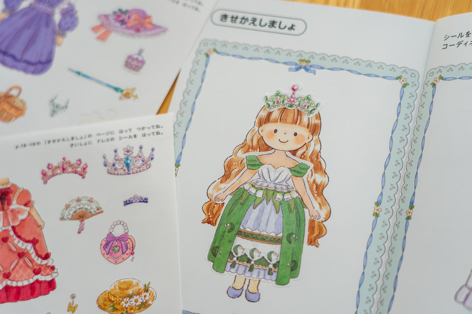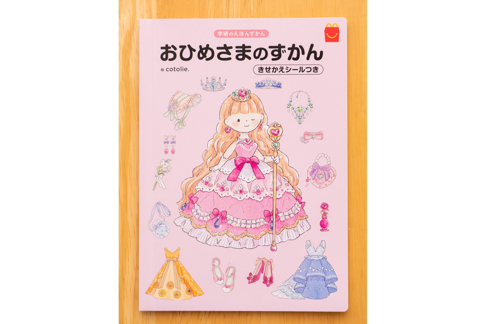 2冊目はミニ図鑑「おひめさまのずかん」で、さまざまなお姫様をはじめ、洋服やおめかし、お城など、お姫様の世界を楽しく学べるイラスト図鑑となっている。
