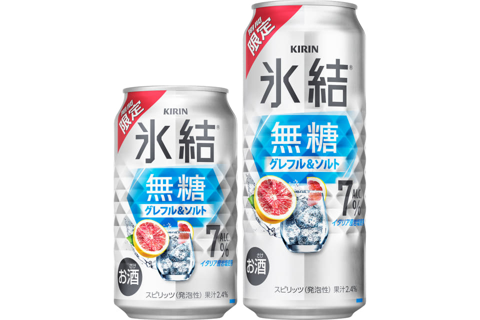 キリンビールは「キリン 氷結無糖 グレフル&ソルト ALC.7%(期間限定)」を3月10日に発売する。350mL缶、500mL缶の展開で、アルコール度数は7%。