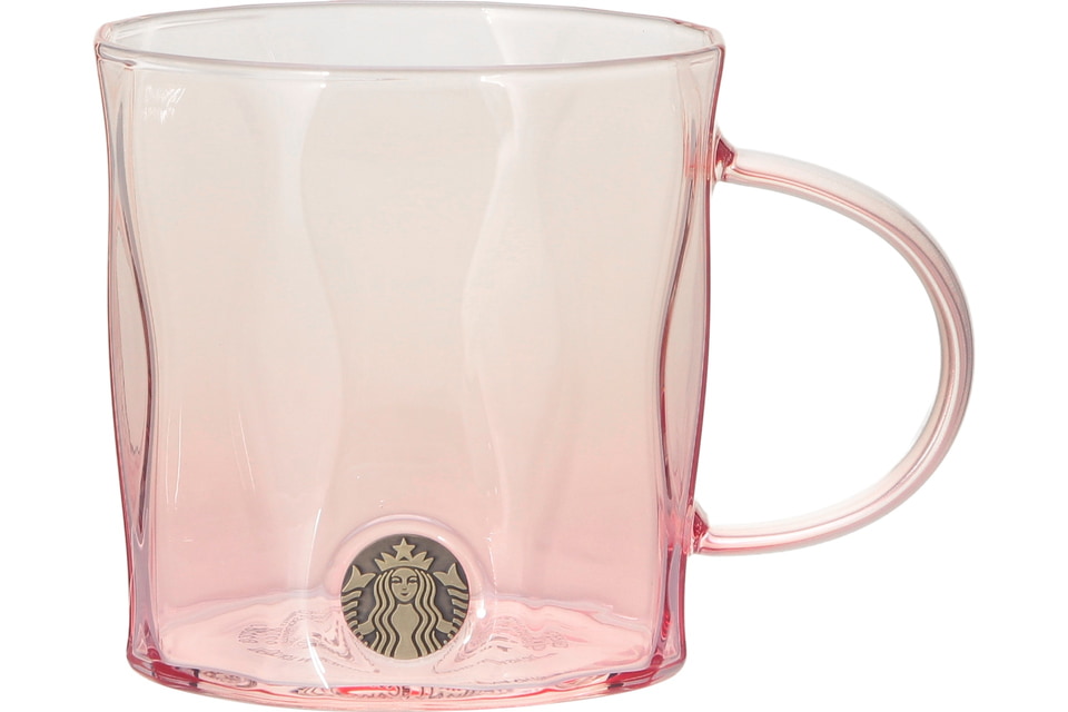 グラスの透明感とやさしい桜のデザインが調和したデザイン。繊細に描かれた桜はエンボス加工が施され、立体感のある仕上がりになっており、グラス上部には「STARBUCKS」のエンボスがさりげなく入れられている。