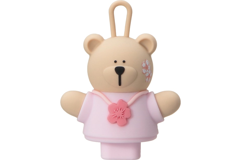 フェイスペイントと首飾りで桜心満載のベアリスタ。ドリンクホールに差し込むだけでコーヒータイムを楽しく彩ってくれる。