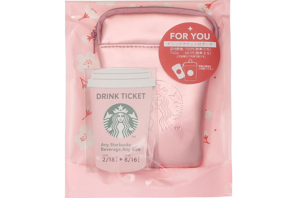 SAKURA2026スターバックスミニポーチギフトピンク(ドリンクチケット付)